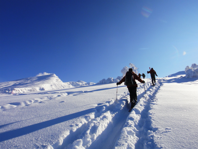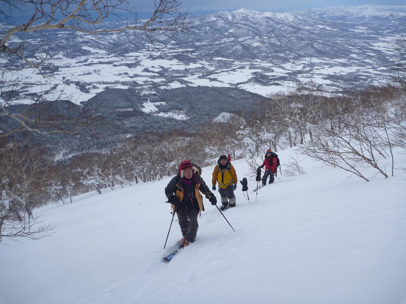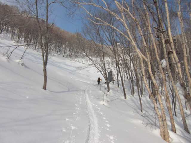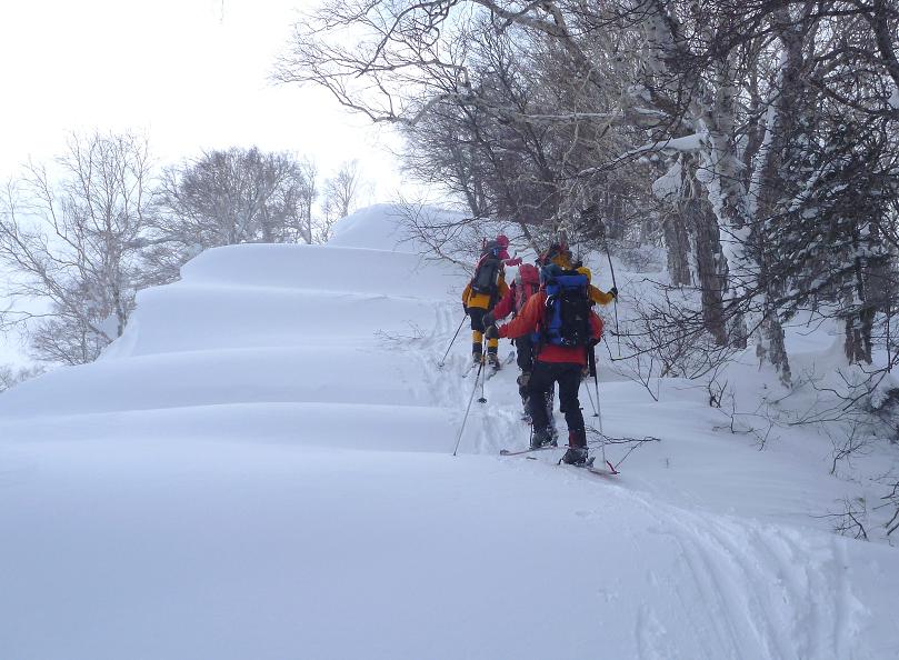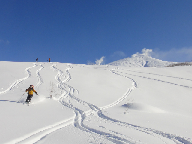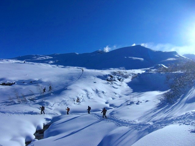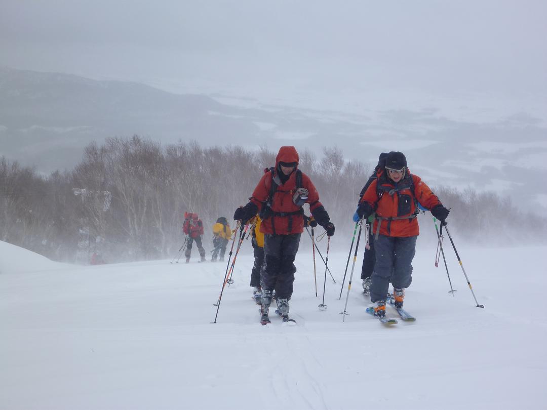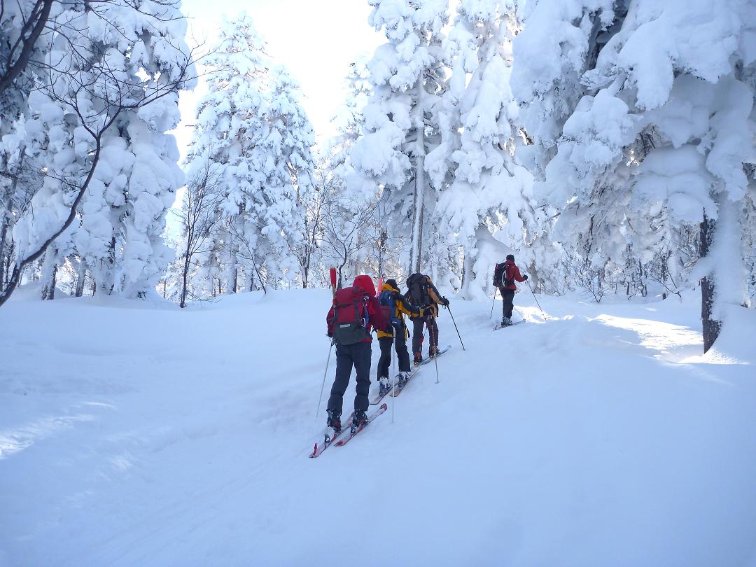 翌日は朝8時に長水会長を先頭に万計山荘を出発、冬山ルートで空沼岳を目指しました。途中からは山びこメンバが中心となってラッセルし約2時間程で登頂することができました。しかし、私にとっての本当の苦しさはその後でした。 急斜面で何度も転び、登り返しで疲労困憊、大勢で踏み固められたトレース上でスピードをコントロールできず両足が外れるド派手な転倒、思わず足を触って問題ないことを確認できたときは心からホッとしました。今年からはじめたスキーツアーですが、未熟さをいっぺんに思い知った山行でした。 by たかたか@新人 |