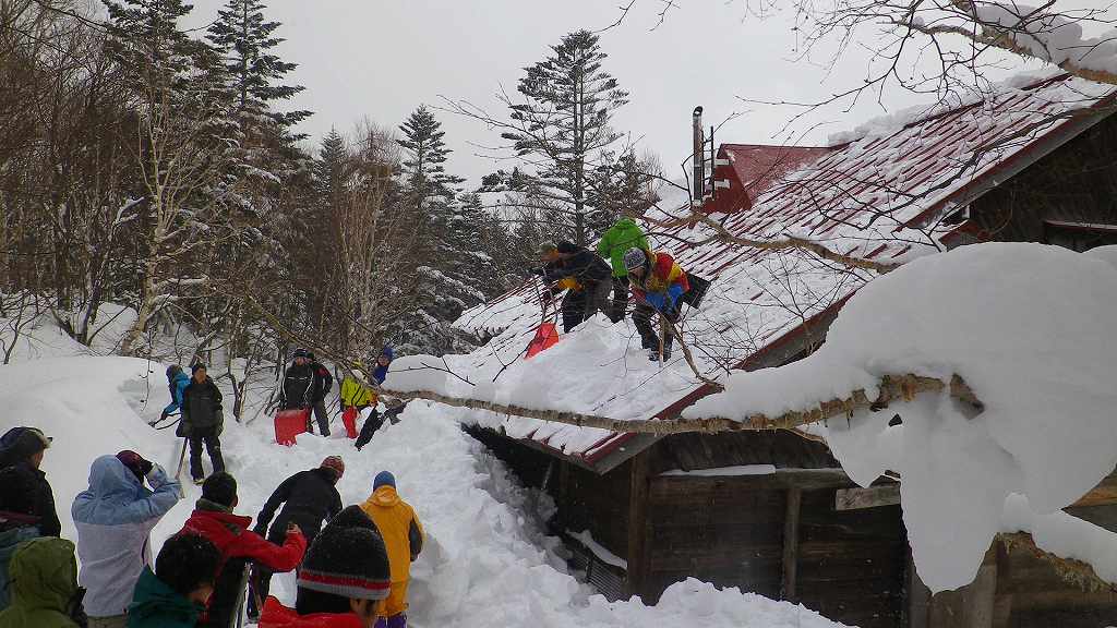 | 万計山荘の雪下ろしと空沼岳 たかたか