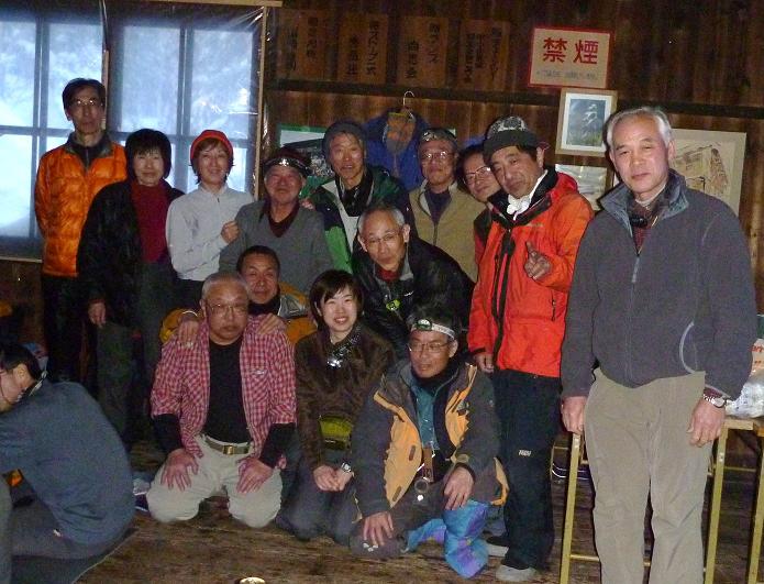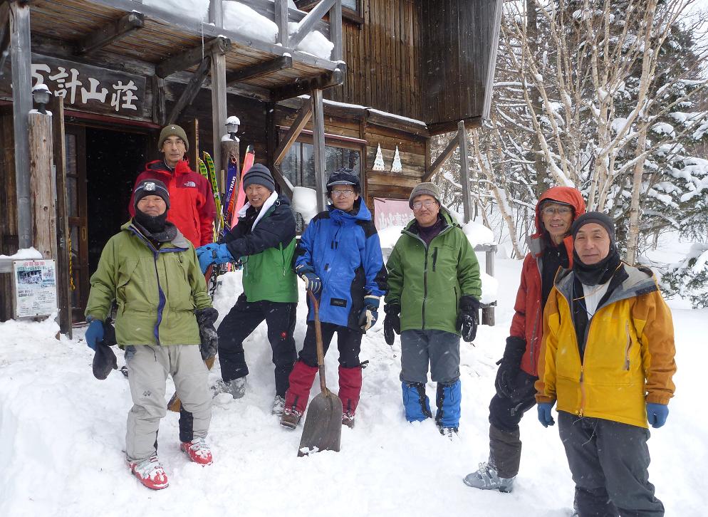 2/4、5の週末、万計山荘の雪下ろしイベントに参加し、翌日空沼岳に登ってきました。万計山荘維持の中心的な役割を担っている当会からは、10名を超える参加があり、他の山岳会の方々や江別高校山岳部の生徒を含め総勢40名近くの人たちが万計山荘に集まりました。そのおかげで、屋根の雪下ろしや軒下からの薪運びはあっという間に終わり、明るいううちから宴会が始まりました。そして、気がつくと最後は山びこのメンバだけになっていました。