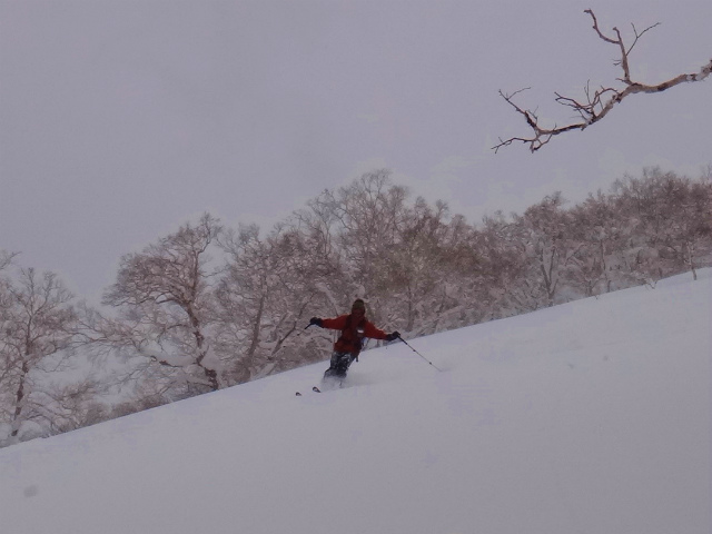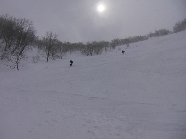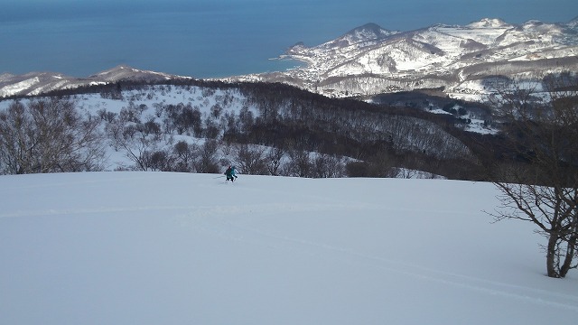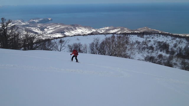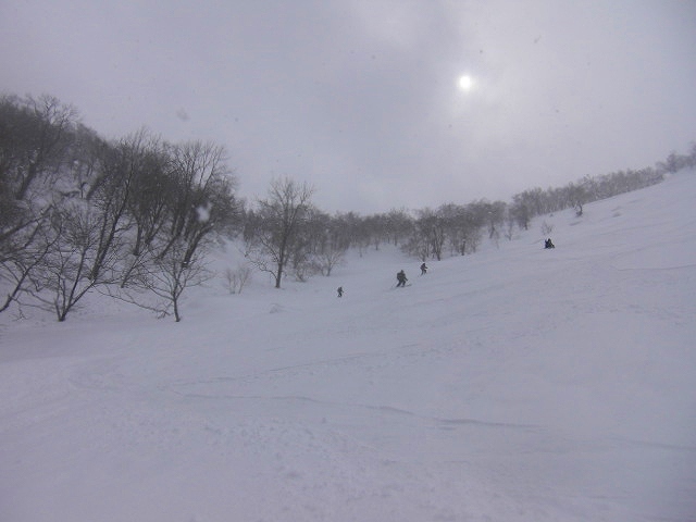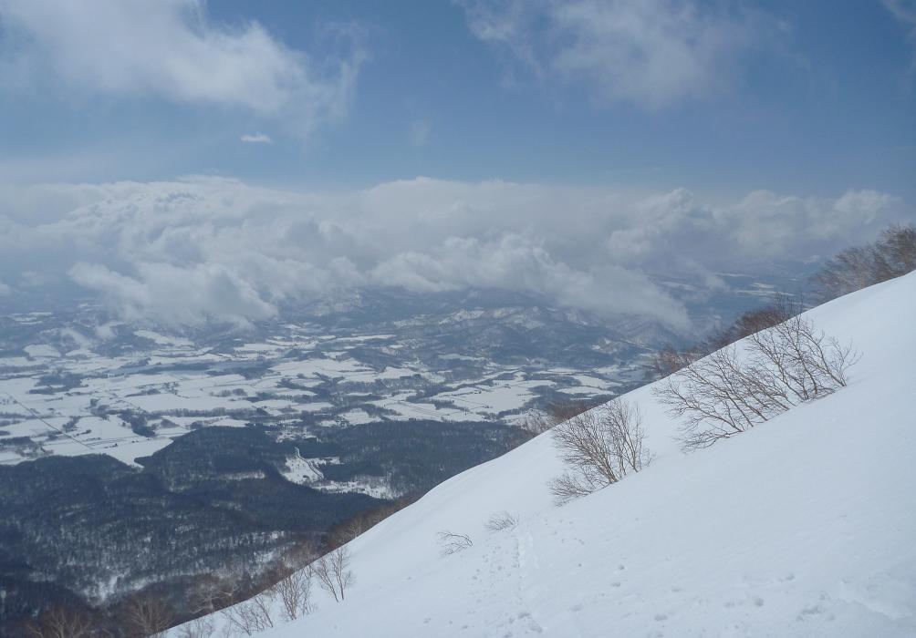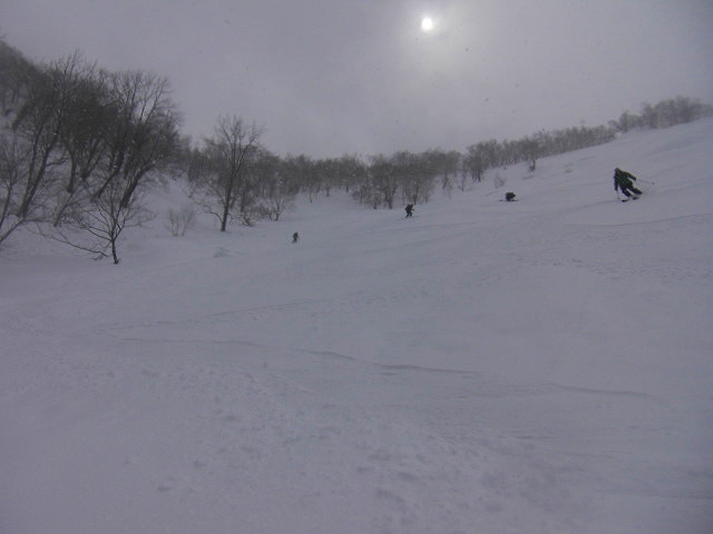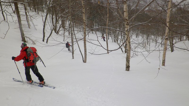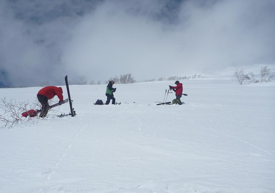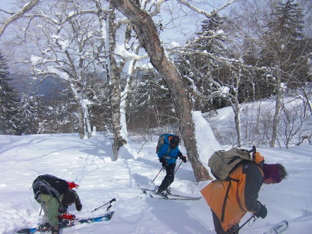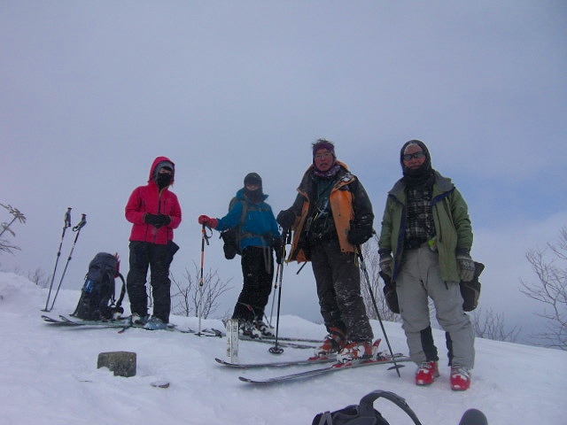 | L Tado・SL Y松さんの迷い沢山の読図山行(12名・ワカンorスノーシュー)に参加しました。昼から荒天予想の為11時行動停止で、Aチームは上平沢林道を往復、Bチームは上平沢林道から東の尾根に登り林道に降りる循環コース、我々Cチーム(A井・Y下・S藤さんにUeno)は上平沢林道入口からすぐ西側の尾根へ登り694m〜793mまで尾根を歩き南の尾根を下り林道へくだる循環コースです。読図山行でなければ歩くことが無いような藪コースでしたがそれなりに楽しめました。@各チーム出発準備A登山口すぐ西側の急登をB急登を登るA井さんC694mポコのまえで読図する |