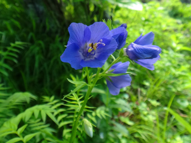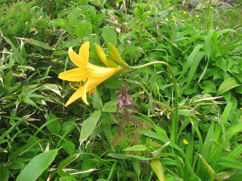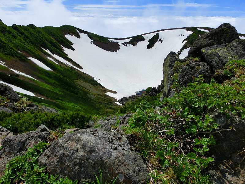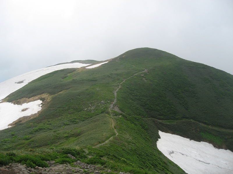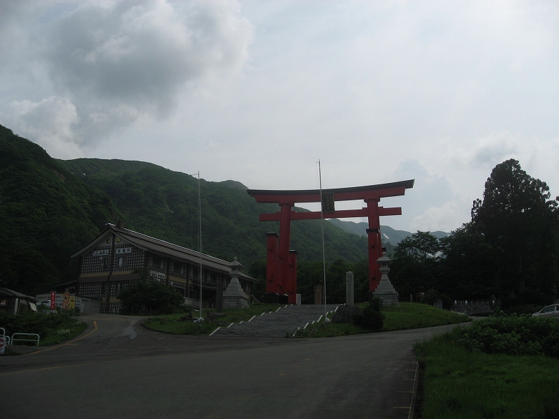 7月1日仙台の息子の所に行ったついでに足を延ばして月山に登って来ました。(頂上の月山神社に行きたかった〜) 湯殿山神社にも行きたかったので、湯殿山から長いルートで登りましたが、さすがに修験者の道(?)でございました。“月光坂”とオシャレなのは名ばかりでとんでもない急坂続きで、究極は“鉄梯子”だもん(^_^;) 「今年は雪解けが遅くて、雪渓だらけで悪路だぞ。有料道路には門限があるぞ」というお参り用のバスの運転手さんに胡散臭げに見られて「努力します」と答えて登ったんですけどね…頂上の月山神社まで残り30分という地点で、土砂降りになりました。 リフトから合流する牛首という地点は大雪渓で、転んで怪我をした年配の女性がいて、山形県警の救助ヘリが飛んでいました。 これ以上悪路になったら時間的にも体力的にも無理、と判断して退却とあいなりました。。。今度は途中までリフトを利用するコースで、“合わせ技で1本!”したいと思います。