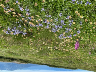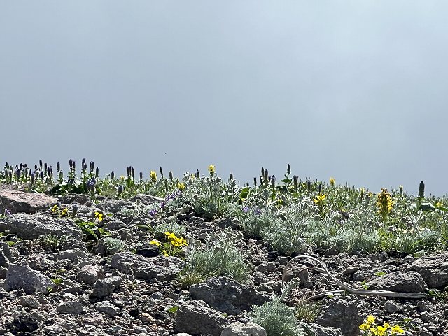ぽんぽんとウサギの耳のように地平線に浮かぶホソバウルップソウは、いつも通りかな。キバナシオガマも旬で黄色がみずみずしい。