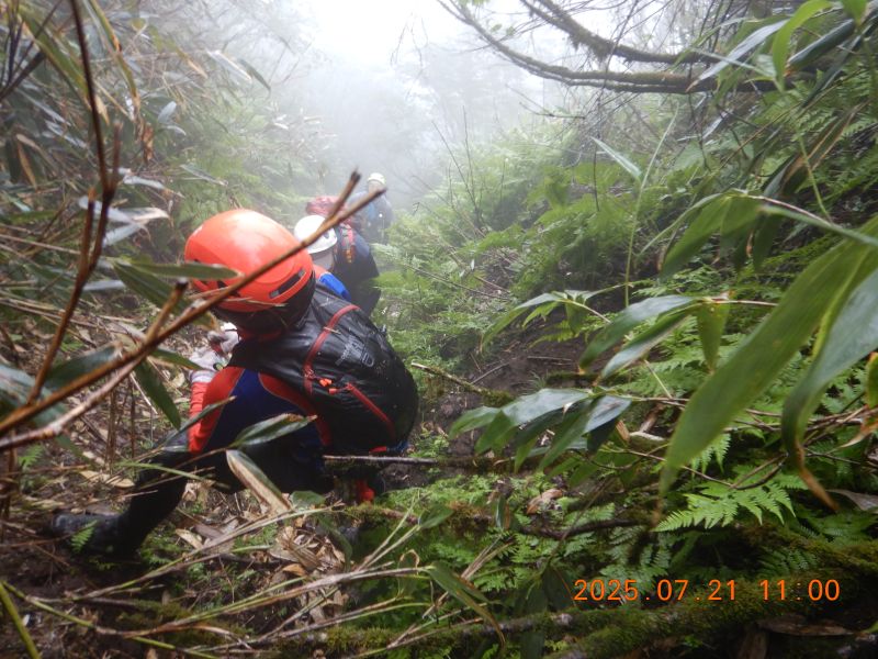 2日目 白雲に行きたかったが、頂上の少し手前で熊が居座り引き返したため、頂上からの絶景は望めず残念