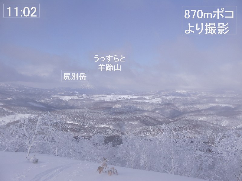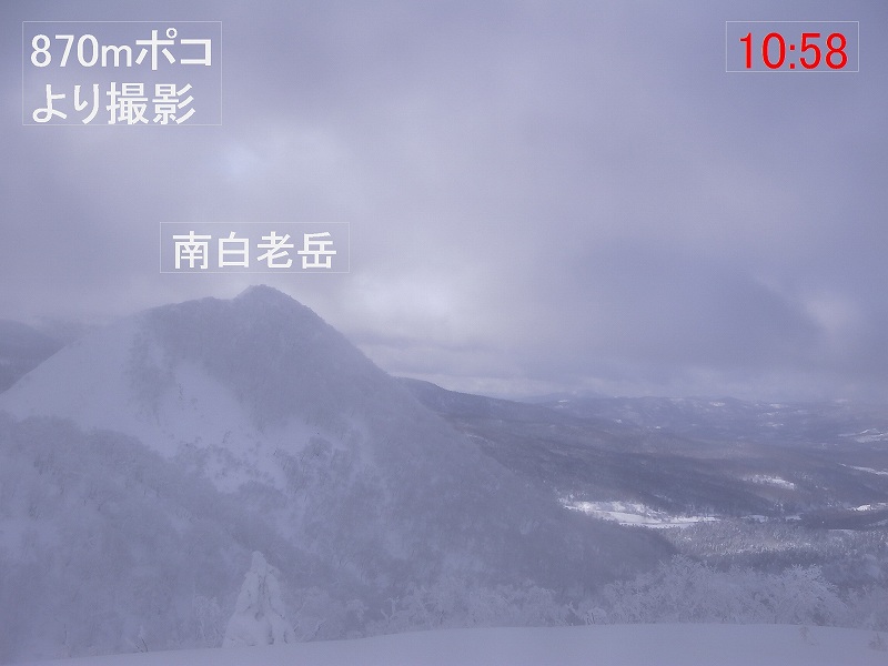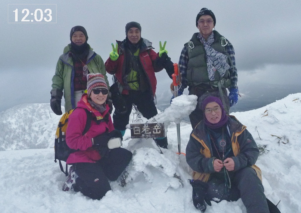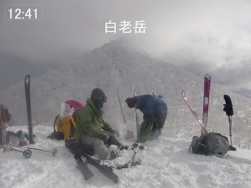 無風、晴れ!絶好の山行日和となった。トレースはなく全部ラッセルとなったが、2〜3日前からの暖気のため湿雪となっており10〜15cm沈む程度でそれほど苦にならなかった。我々のほかは三ノ沢コースからの4人組1パーティー(スノーシュー)のみであり、白老岳頂上で出会った。870mポコ&白老岳頂上からの眺望は素晴らしかった。 【コースタイム】 09:05 中笛橋を渡り、国道の雪壁をよじ登り出発 11:00 870mポコ 11:44 930m付近でスキーデポし、つぼ足で頂上へ 12:00 頂上968m 着 12:13 下山開始 12:30 870mポコ(ここでシールを外し滑降開始) 13:50 駐車位置 着