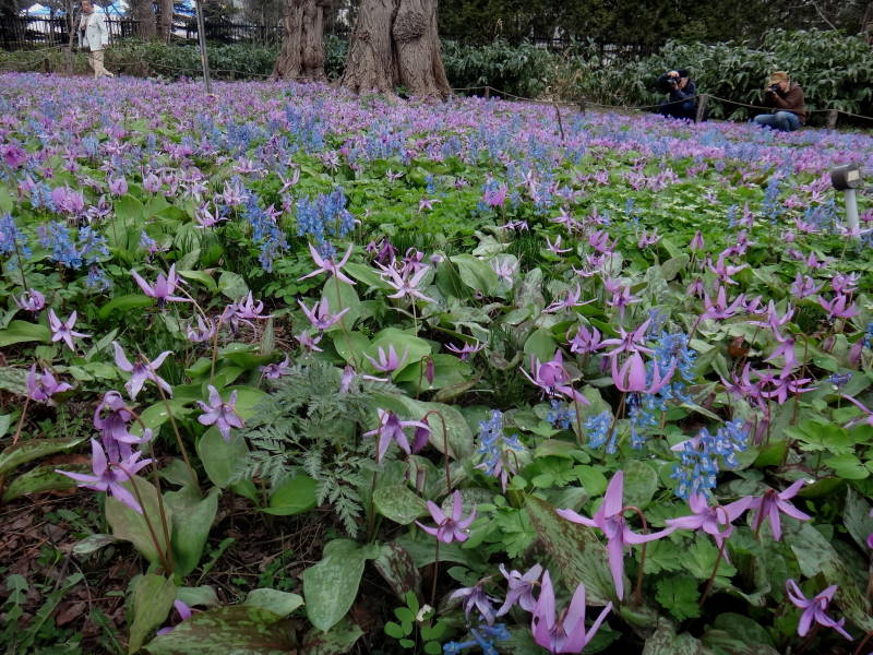 今日Jさんより真駒内公園のカタクリが満開だとの情報があり早速出かけてまいりましたので写真を添付致しました。今年のカタクリ鑑賞会は5/6に予定されていたようでしたが、このばか陽気で早まって5/2になった模様ですが今まさに満開を少し過ぎておりましたので5/2まで持つか?初めて真駒内公園を訪れましたがなかなか見事でこれならば旭川まで行かなくても良いかも知れませんね!ちなみに4/24に豊平公園でもカタクリ&エゾエンゴサクを写して着ましたので1枚だけ添付致しました。 |