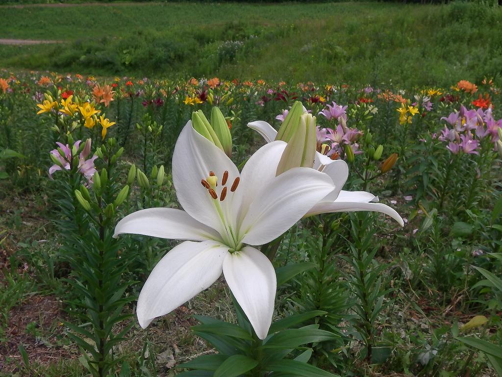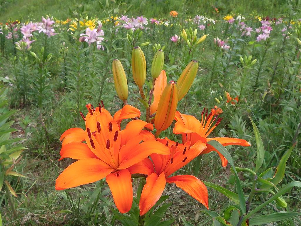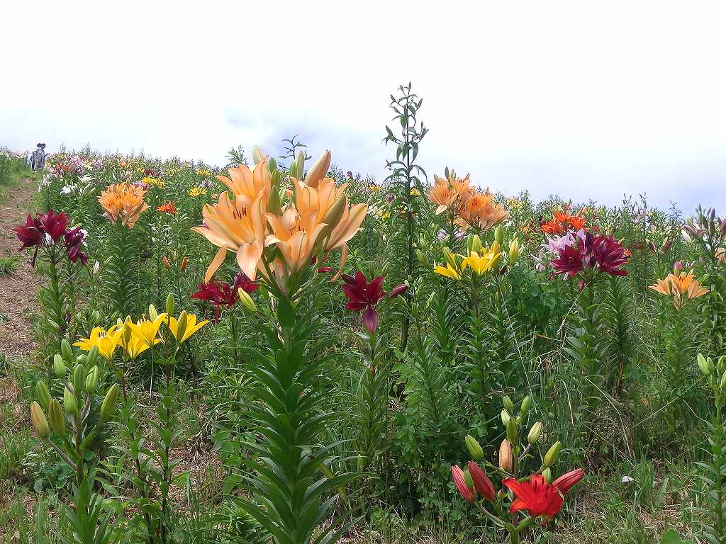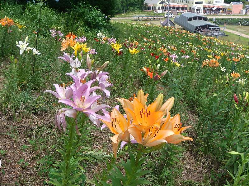 無料券をもらったので『オーンズ春香山ゆり園』に行ってきました。(通常は大人800円もする。800円も払ってわざわざ見に行くこともないかな〜って感じですが・・・ 期間は7月11日〜8月23日) まだ少し早いような・・7月下旬〜8月上旬が最盛期(すかしゆり&ハイブリッドゆりが重なって咲くとのこと)のようです。 オーンズスキー場のリフトに乗って登り、帰りはゆりを見ながらゆっくりと下って来るひとがほとんどです。私たちは当然下から歩いて登ります。リフト降り場まで僅か1.1km、それにまったくの空身なのに足が重い!!『連日の山登りの疲れが溜まっているのかな〜』と独り言を呟きながら、やっとリフト終点へ。これでは、今週の『クチャンベツ〜忠別岳〜高原温泉』の縦走が思いやられる。 |