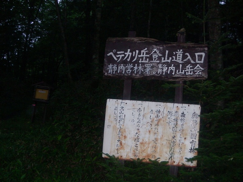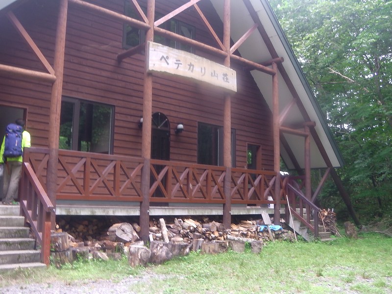 ペテガリ山荘2泊りでペテガリ岳に行ってきた。 駐車場からペテガリ山荘まではテープ&看板がしっかりと付いていたが、帰りちょっとした勘違いで道迷い(広いりっぱな林道での道迷い)。1時間のロスタイム。人間の記憶の曖昧さをつくづく実感する。【駐車場〜ペテガリ山荘まで、行き3時間、帰り4時間】 ペテガリ山荘〜ペテガリ岳は12時間10分(登り6時間25分+下り5時間20分+頂上休憩25分)。下りの最後3時間はバテバテ状態(登り返しの連続)でやっと山荘にたどり着く。曇り&ガスっていて山頂の眺望はまったくなし。登頂した感激はひとしおだったが、もう二度と登りたくないと思った。 *靴−駐車場〜ペテガリ山荘までは沢を登り下りするのでリーダーと私は水に入ってもOKの作業用靴(ズック靴)一本ですべての行程をこなした。この時期暑いので沢を気にせずジャブジャブ水に浸かるのは気持ち良かった。 *水−駐車場〜ペテガリ山荘は沢水を飲める。ペテガリ山荘には水(地下水)あり。ペテガリ山荘〜ペテガリ岳は水ないので、最低3Lは必要かと・・・ | |