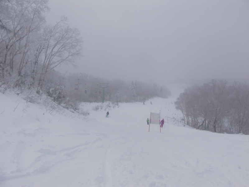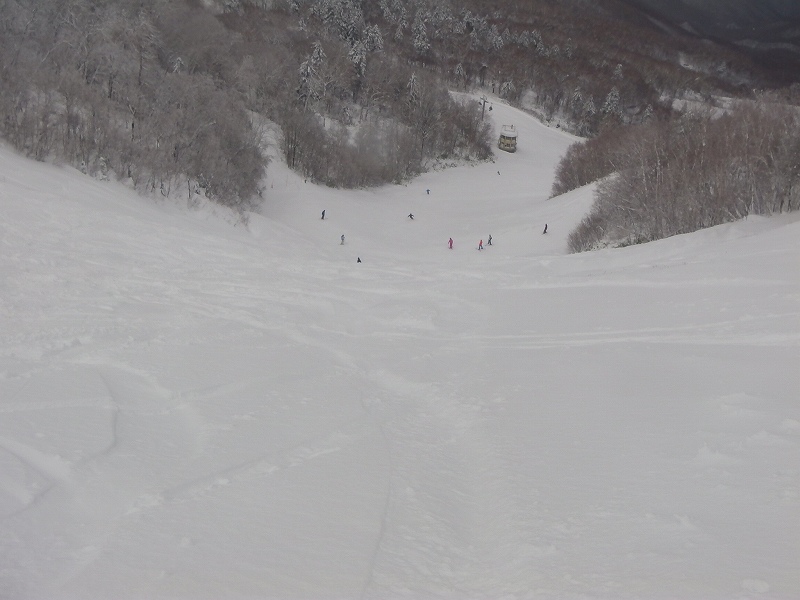 女子大回転・最後の急斜面 | 女子大回転・最後の急斜面 | 女子大回転・頂上へと続く緩斜面 | もうすぐ山頂スナック(ヒュッテ) | |