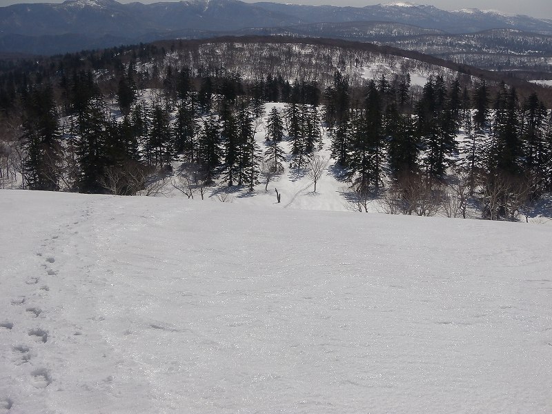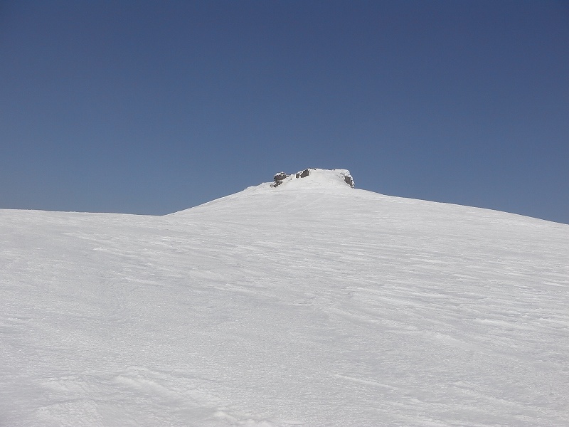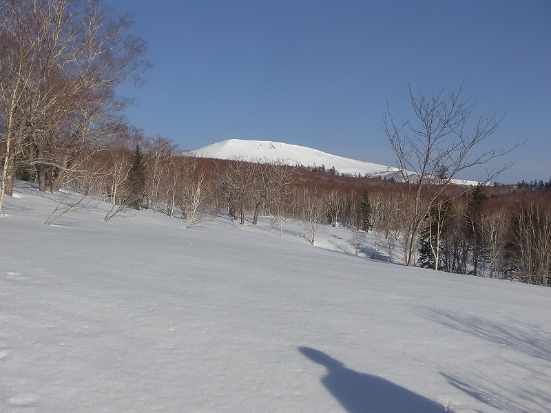 4月3日(日)雨のため中止となった『中岳』に快晴の5日(火)登ってきました。今回は平日のため、N沢さんとMの二人、朝6時に無意根大橋の駐車場をスノーシューをザックにつけて出発。林道はしばらく前まで工事をやっていたようで除雪されておりほとんど雪はない。尾根に取り付いた700m付近から先も林道は土が見えていた。(その先、どこまで除雪されているかは不明)快晴でほとんど風もなし、順調につぼ足で登っていく。さすがに頂上付近からは風が強くなったが・・・1052mポコまで2時間、そこから頂上まで1時間30分、6:00に出発して9:30で『中岳』頂上に立つことができた。快晴の真っ青な空の下、360°の眺望を堪能した。無意根山はすぐそこに見え、1時間もあれば頂上に行けるだろう。天気の良い日を見計らって、平日、山に行けるのはやはり最高だな〜(^_-)-☆ 下りもつぼ足で歩いていたが、ちょっと雪が緩んできたので初めてスノーシューを履いた。つぼよりずっと歩きやすい。もう少し早く履いていればよかったと悔やむ。9:50に下山開始し、12:30に駐車場に到着。総行動時間6時間30分であった。*GPSログ−林道から離れて尾根に取り付いた(700m付近)以降の軌跡はなかなかに綺麗(余分な動きがほとんどなく)で満足〜〜。これはリーダーN沢さんのお陰ですね。 |