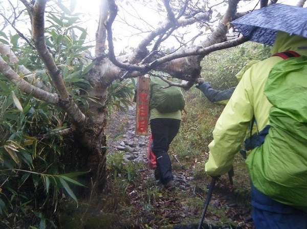 登山口にて | 7合目 | 登頂後、山頂直下にて | 目国内より前目国内に向かって歩く | |