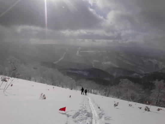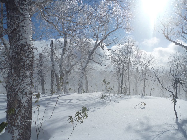 シーズン始めに7名で手軽な小喜茂別岳へ行った。札幌より雪が少なくササが結構出ている。天候は曇りで時々陽も射したが風が強い。ラッセルは15cm位で楽でした。期待の滑りは上部は想像以上のパウダーで皆 気持ちよく滑れた。 下部はクラストしておりました。 |