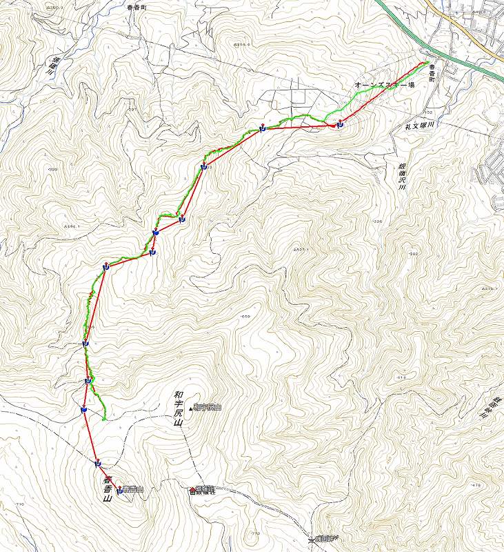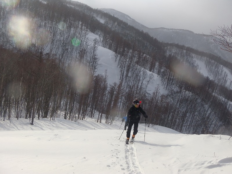 山びこパーティー6名とHYMLパーティー4名の計10名で一緒に行動する。曇り時々雪、風はそれほど強くはなかったが、帰りトレースが消えていた個所があった。(やはり、ピンクテープ・ルート旗は必ず付けていくことが必要である。) この日は我々10名のみで、誰にも会わなかった。当然、フルラッセル(20〜30cm)であったが10名もいたのでそれほど難儀はしなかった。帰り、登り返しが数か所あり(一か所はシールを付けて登る)、810mからの下りもゲレンデ合流までに2時間10分かかった。雪質は最高で気持ちのよい滑りができてみんな満足していた。(一部急斜面は木が煩わしくちょっと苦労する。) 今回はリフト動く9時からの出発余儀なくされ、残念ながら時間切れで810m途中撤退となった。1月〜3月、土・日・祝日はリフト朝8時からの営業なので、再度「春香山」頂上を目指し再チャレンジしたい! |