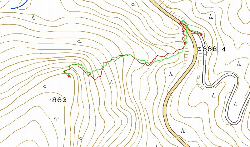 GPSログ(google earth) | GPSログ(地形図) | GPSログ(地形図 拡大) | 故障者背負ってのスキー歩行 | |
