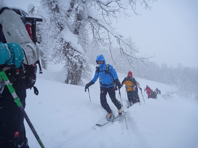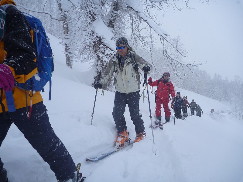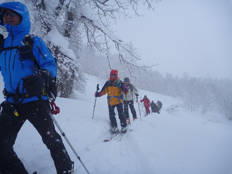 2/19 小雪の中12名参加で音江山に行きました。降雪20cm位でしたが先行者がおり、ラッセル無しで登れました。頂上は風もあり寒かったですが、ここの斜面はなんとも滑りよく良いですね。程よいパウダーで楽しめました。山のふんいき?が何ともいえず良かっです。M井リーダー。J西サブリーダーお疲れさまでした。登り2時間50分。下りは1時間でした。同じような写真ばかりですが。