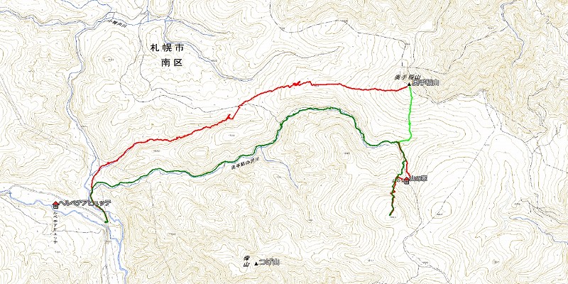 先週に引き続き『奥手稲山』に登ってきた。今回は「奥手稲の沢」一本北側の沢を詰めて頂上へ、そこから奥手稲の沢川へ滑り降りて山の家に登り返しユートピアゲレンデを滑降する計画である。山の家から984mポコまで登りほぼ計画通りの行程となった。快晴、無風の絶好の天気であった。雪はちょっと重めであったが気持ちよく滑ってこられた。帰りの林道歩きが約1時間30分と長いのが欠点かな〜 総行動時間6時間50分 |