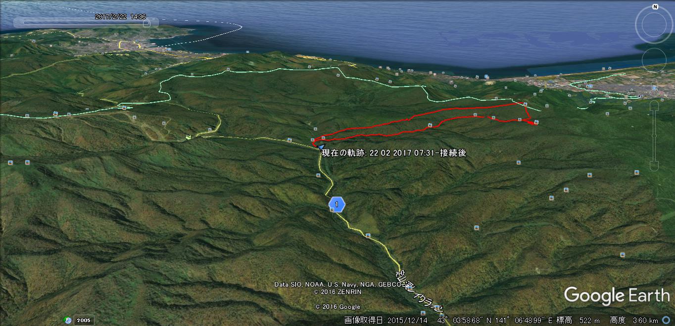 | No.439 奥手稲山〜山の家〜984mポコ:GPSログ 2017.2.22 M 2017年2月23日(木) 11:24 |