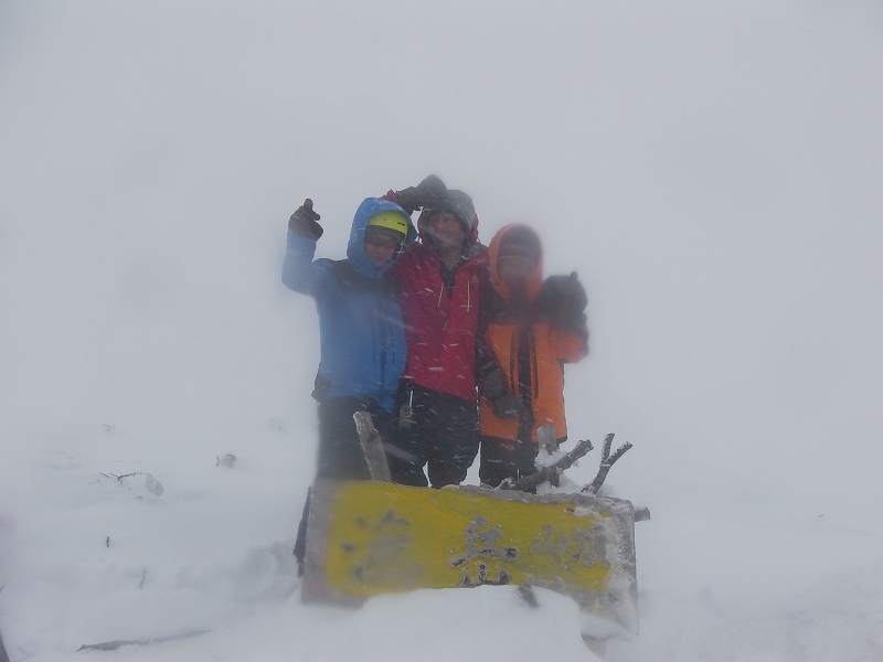 12:00 頂上にて | 11:20 最後の急登を登る。視界極めて不良!! | GPSログ・カシミール3D:登り−赤、下り−緑(下り−頂上から1175mまでログ切れている。) | GPSログ・google earth | |