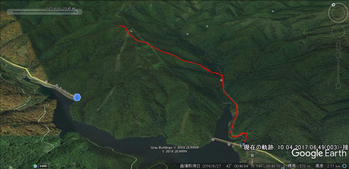 GPSログ・google earth | GPSログ・地形図(カシミール3D) | 真新しい熊の足跡 | 頂上にて | |