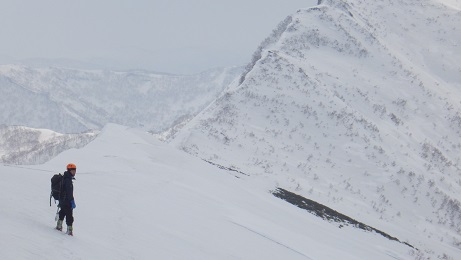 天気予報は留萌地方が雨、石狩地方が晴れで風は強いとなっていました。しかしながら、行って見ると、1日目は半袖で登れるぐらい穏やかでした。天気が良いのでテントを設営してから奥徳富にでも行きますかとスキーで行きましたが、群別川のSBを渡り、尾根に取り付くとスキーでは無理と判断、アイゼンで行くには時間が無さ過ぎで、テントに帰って酒飲む算段に決定し水を作り宴会開始。2日目は6時出発で増田の沢から登って天気にも恵まれ、群別岳に3時間弱で登頂、さらに欲張って奥徳富に行こうと稜線を使って目指すも、途中強風とガスに阻まれ視界不良で頂上直下で敗退し、来た踏み跡をたどって再び群別のピークに、するとガスと風が無くなり視界良好、下山時はピーカン状態、なんとも山の天気はわからんです。