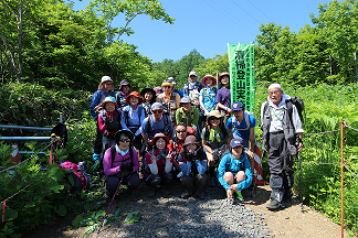 多くの参加者がおりましたので、普通に歩く組みとゆっくり歩く組みに分けました。私は足が痛いのでロキソニンを飲みながらゆっくり歩く組みに入りましたが、その分、花もめでる事が出来ました。めっきり少なくなったエゾタンポポも結構ありました。花の下の部分の総苞がセイヨウタンポポは反り返っておりますが、エゾタンポポは上を向いておりますのですぐ分かります。その他タニウツギ、ベニバナイチヤクソウ、コウライテンナンショウ通称マムシグサもありました。普通に歩く組みより30分以上も遅れましたが普通の組みの皆さんは全く気が付かなかったのではないでしょうか? |
