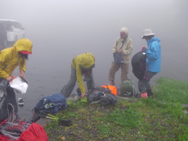 07:08雨&ガスでも楽しそう〜(安政火口渡渉) | 06:25出発準備中 | 07:35上ホロ分岐 | GPSログ | |