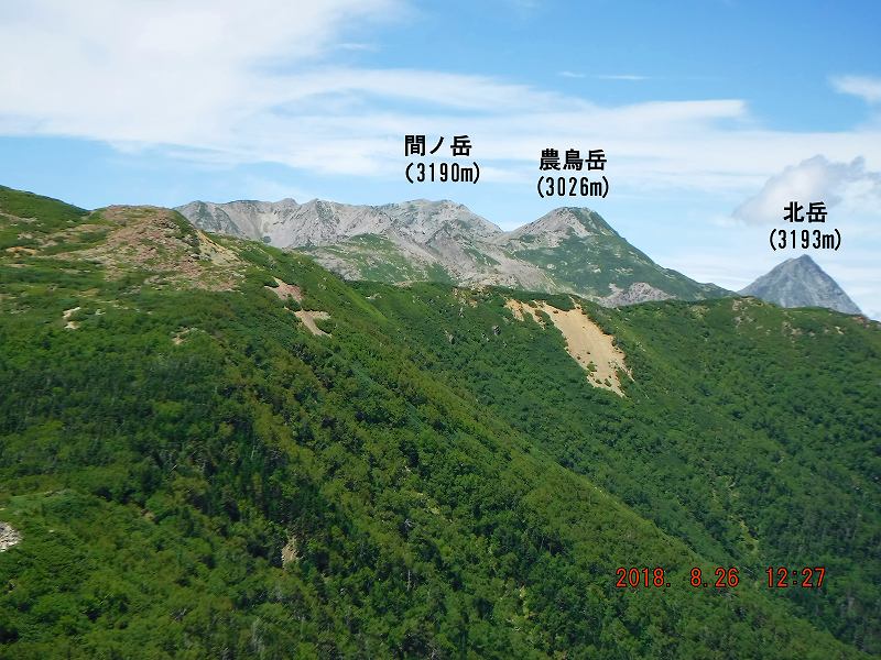 笹山(北峰2733m)は南アルプスの白峰三山(北岳・間ノ岳・農鳥岳)から南に派生する長大な尾根(白峰南嶺)に位置する。このため,白峰南嶺南部の笊ヶ岳と同じく塩見岳・赤石岳ほか,南アルプス中部の主峰の格好の展望箇所でもある。笹山は10年ほど前に直登ルートが開設され,日帰りが可能となった(それまでは2泊3日の天幕山行で通過しただけ)。「笹山」という名から,私は空沼岳登山道脇のクマザサを思い起こすが,実は笹山ルートにはササは全く見られない。駐車場から笹山北峰まで標高差が1900mほどあり脚が心配だったが,翌日から3日間,筋肉痛に見舞われた。写真はいずれも笹山北峰から。 駐車場5:55-山頂12:10ー駐車場15:50(往復) | |