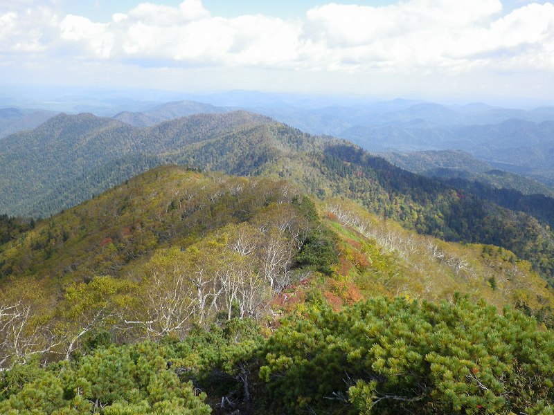 秋分の日、以前からメールでやりとりをしていた人と初めてお会いし、3日間の北大雪山行計画のひとつ支湧別岳に同行しました。周りの平山や武利岳、武華山などから較べるといかにも地味な山ですが、苔むして雰囲気のある登山道や360度広がる山頂からの見晴らしなど、とても印象深い山で、また別の季節に訪れてみたいと思いました。