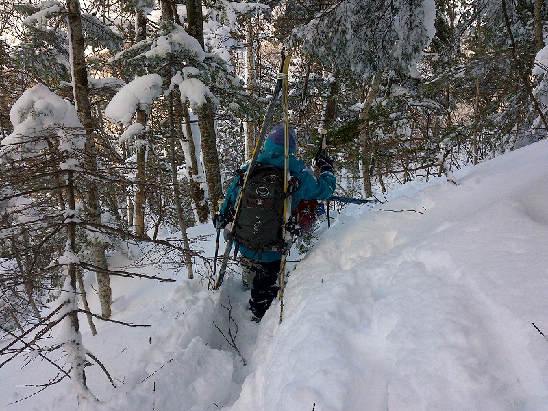 @豊滝から目の前に見える盤の沢山に山スキーで行ってきた。 A8:30 送電線の下のゲートからコル(690m)を目指す。その後も山スキーなのでジグを切りながら登るが、木が邪魔をして標高840mからはスキーを諦め、ツボ足でピーク893.3mを目指した。ピーク着13:00。ん〜・・でも、「盤の沢山」の看板見つけることが出来ない。GPSでは的中しているのだが・・。 。B下りはスキーを担いで標高780mまで下り、そこからスキー装着!15:00車止め着。スキーはやはり早いなあ〜〜〜