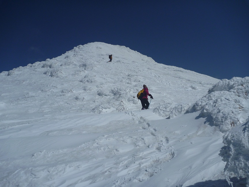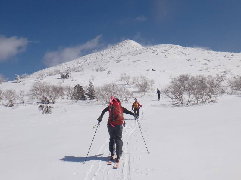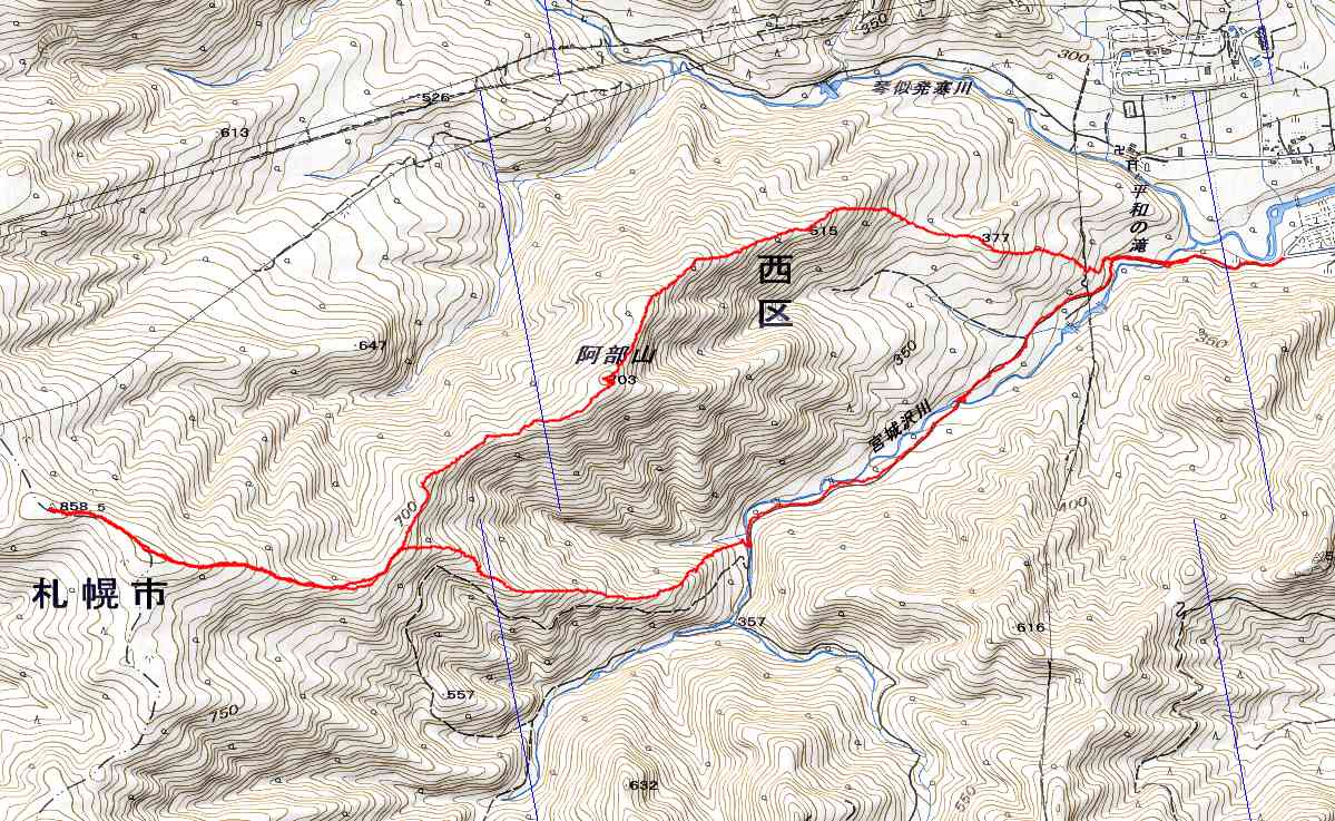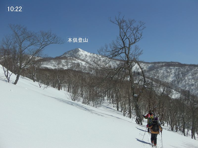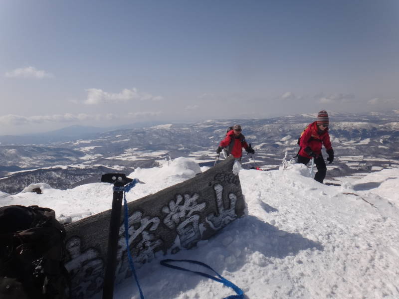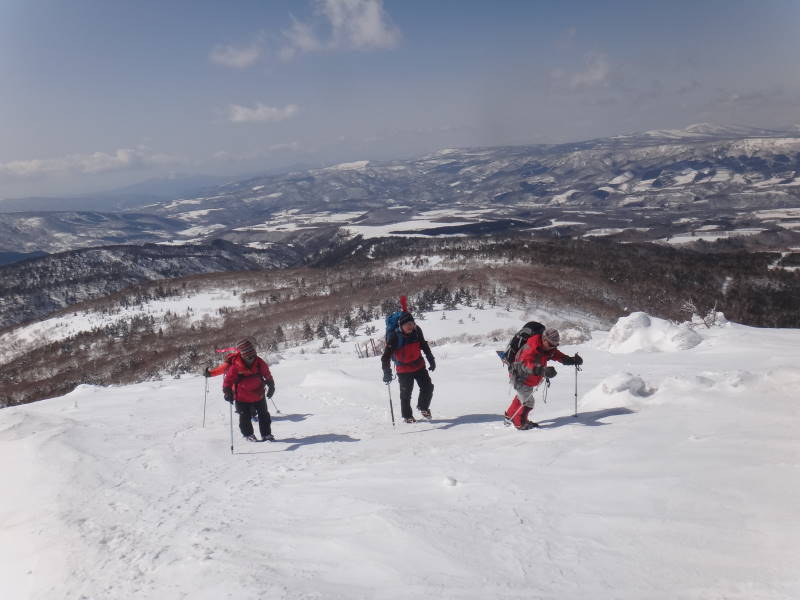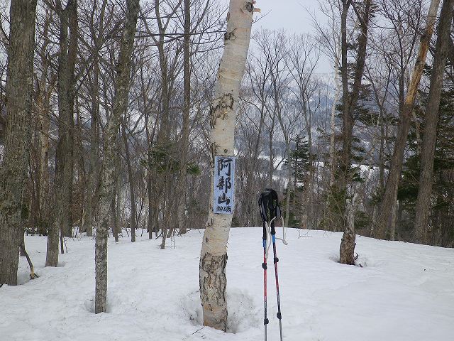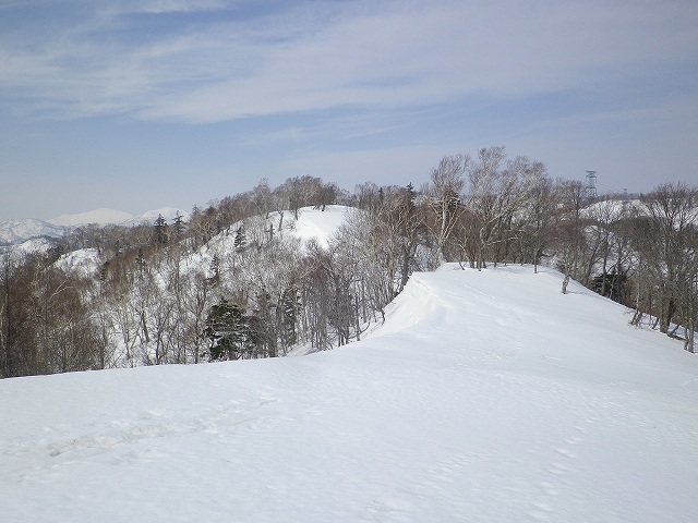 残すところ3山となった札幌50山のひとつ阿部山に行ってきました。それだけでは物足りないため、その先の峯越山までピストンしました。 当初は平和の滝から出発して、琴似発寒川を渡渉し、ぐるっと回って送電線の下を下山するルートで計画しましたが、今年は雪解けが進みスノーブリッジが無くなっている恐れがあるため、ルートを変更し宮城の沢から登って降りてきました。それでも結果的には、宮城の沢の渡渉に苦労する羽目となり、川の中をジャブジャブと歩いて渡りました。 阿部山から峯越山はだだっ広い尾根がつづき遠くまで景観が広がっています。その雪原を気持ちよく歩くことができました。当日出会った登山者は1組だけでしたが、挨拶してびっくり、以前山びこ会員だったT際さん親子でした。しばし近況を交わす。