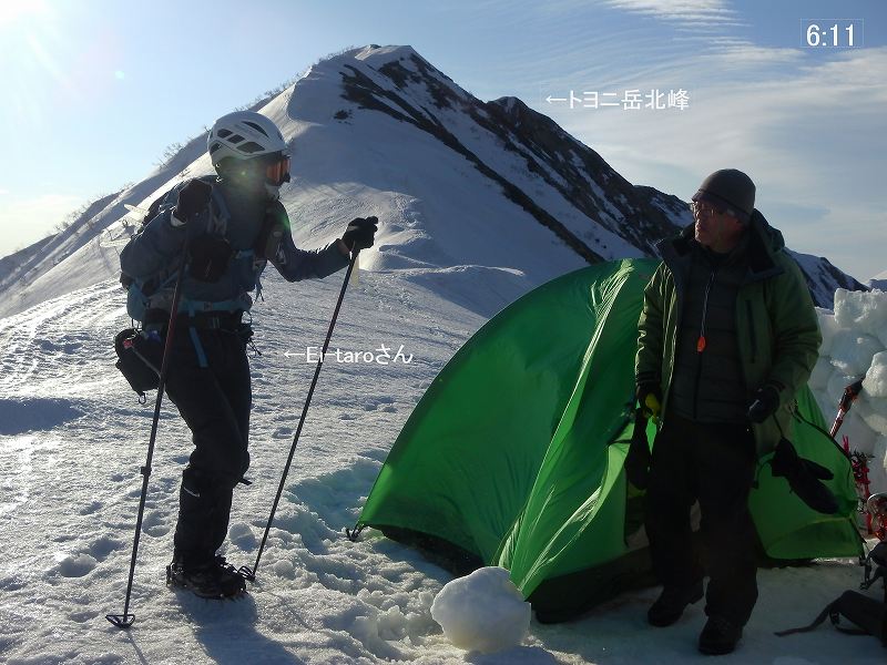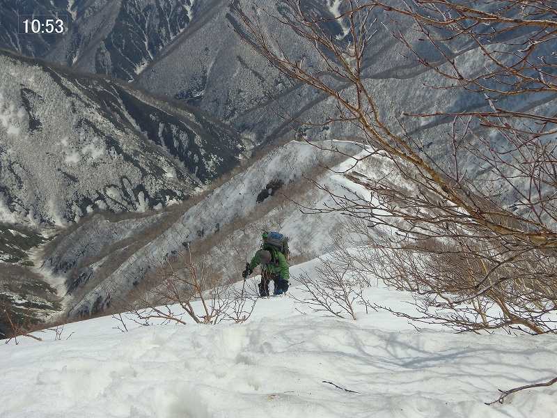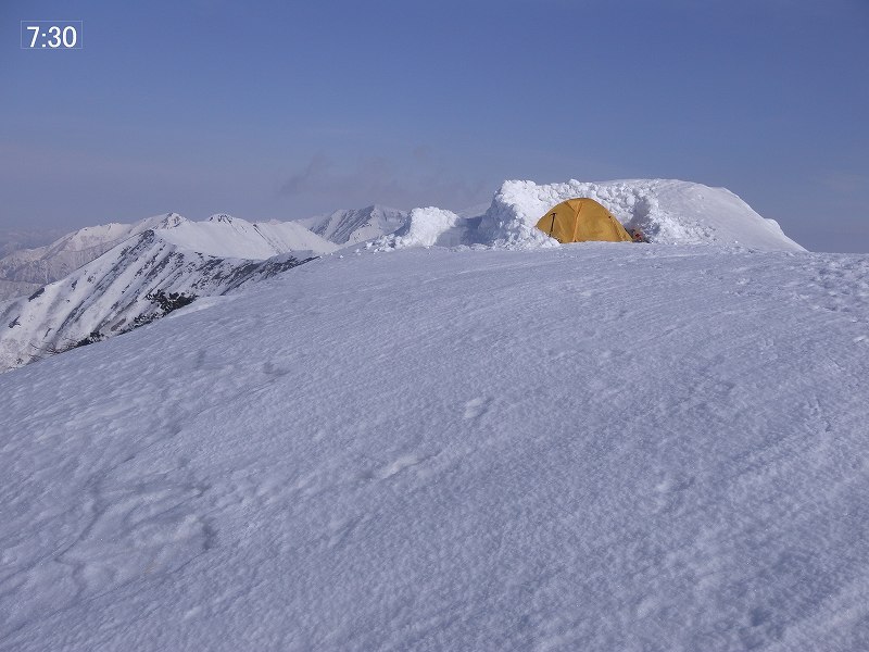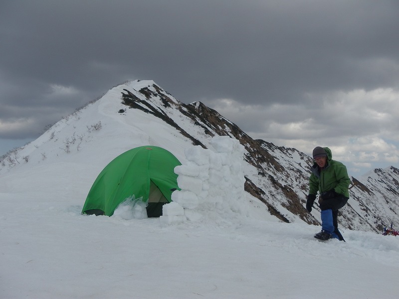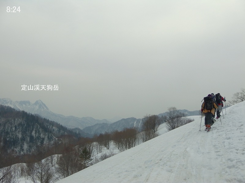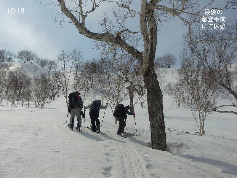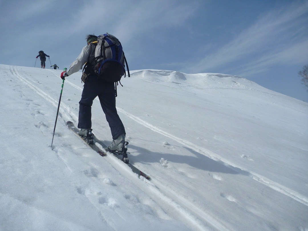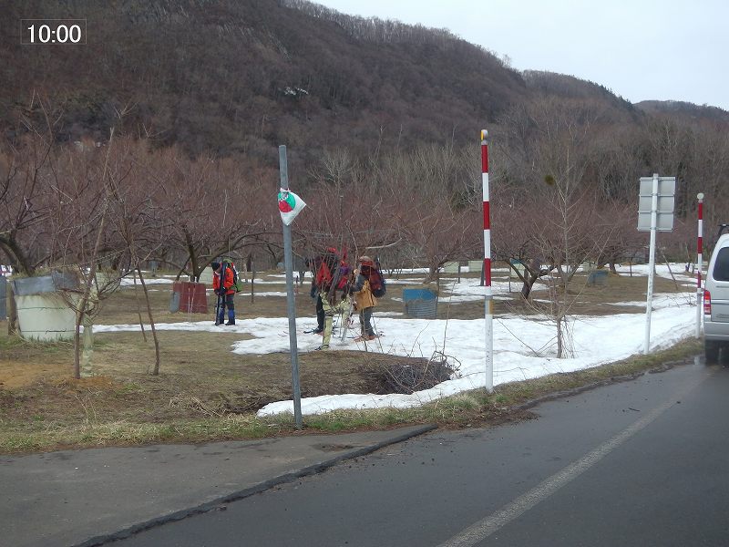 4月5日(日)、山スキー12人・スノーシュー2人の計14人+旭川から会友のK下さん参加で『浜益御殿』を目指すも、強風のため先頭第1グループ845m地点にて行動停止・途中撤退となりました。 【先頭第1グループ コースタイム】 08:20 駐車地点 着 08:35 出発 10:30 500mコル(出発して約2時間) 11:35 845m地点にて強風のため行動停止(出発して3時間) 11:46 第2グループと合流 12:25 第3グループと合流 13:25 駐車地点 着