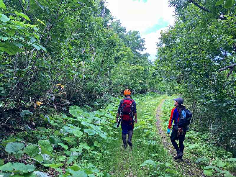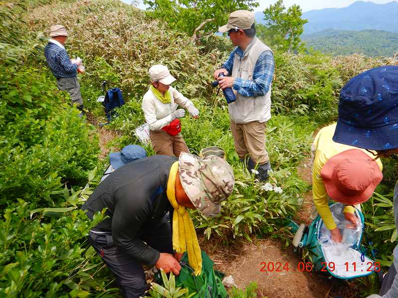 拠点となる万計山荘から重い道具を抱え3時間を要して現場に到着すると、登山道はタケノコ採りのような密集した笹薮の連続で、その荒れ具合は想像を遥かに超えていました。