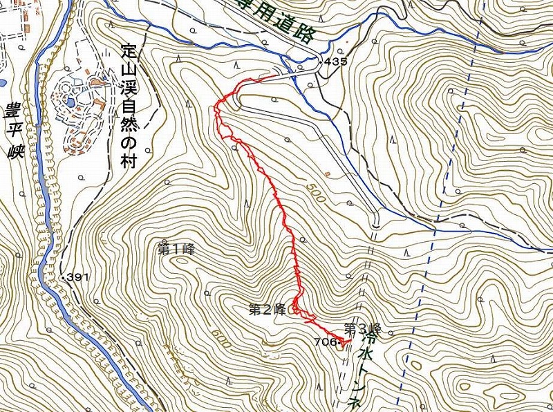 最近になってピークに向かう尾根伝いに古びた作業道があることを偶然に発見したので、それを利用し尾根をつないで第三峰まで行ってきた。