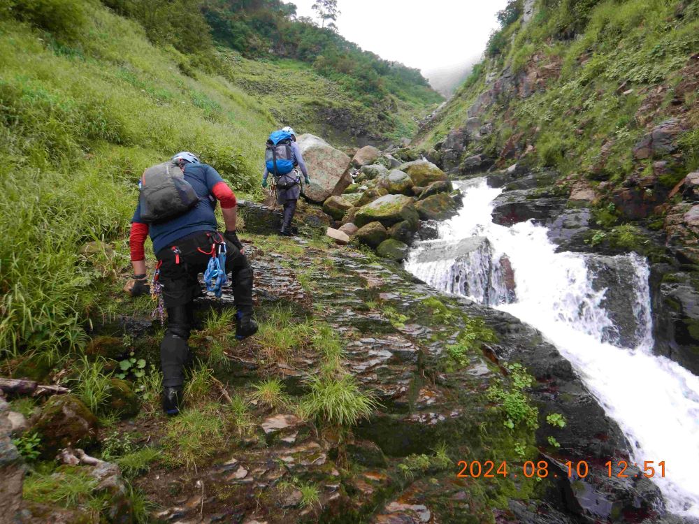 この10mの滝はリーダーYがトップで登り、後続を確保