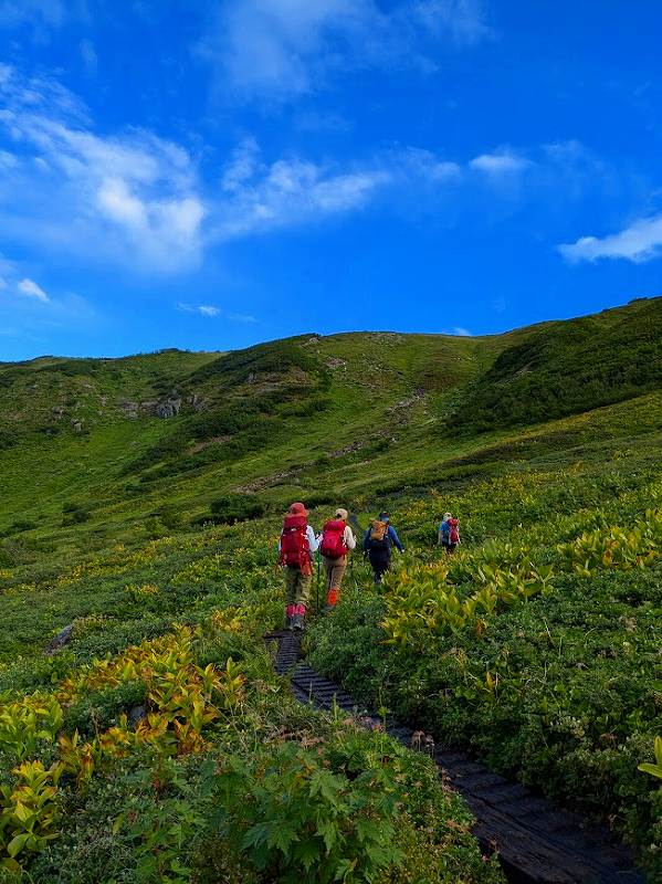 北海道の山岳9団体による空沼岳−札幌岳縦走路整備は、6月下旬から作業が開始しました。我々が所属する札幌道央地区勤労者連盟は、縦走路の中間に当たるヒョウタン沼付近の約1kmの区間を担当し、9/7、8の作業には当会の4名を含む約40名のメンバが集まりました。