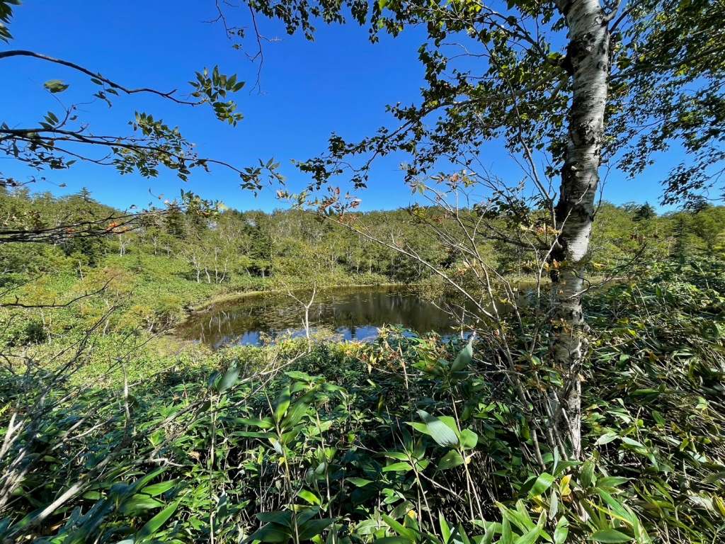 探索班が付けた目印に従って5班に分かれた笹刈班が30m間隔で縦に並び同時進行で笹を刈るという段取りもなかなか整然とはいきませんでしたが、リーダーの叱咤激励とみんなの頑張りで目標となるヒョウタン沼を越えることができました。