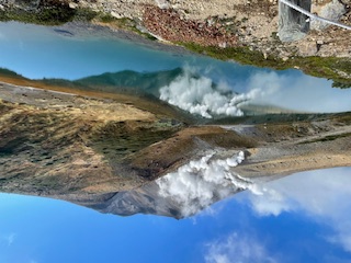 8/19にやまびこ女性5名で早朝4:50、みくりが池温泉より出発。天気が心配だったが晴れて、浄土山山頂近くより薬師岳などがすっきり見渡せた。一の越山荘からの登りがきつかったが室堂が美しく眼下に見渡せた。雄山山頂には神社がありせっかくなのでお参りすることにしたが700円かかり神主さんのお祓い付きだった。参拝者で万歳三唱することが通例で、皆で大声で山に向かって万歳三唱した。そうこうしてすっかり時間がずれ込み、急にガスってきた。大汝休憩所でも有料トイレなども利用し休憩し、富士ノ折立は急登でちょっとしたロッククライミングのようだった。その奥の別山に行くと立山三山制覇だったがガスで眺望もなく時間も押していたため、手前の真砂岳でピストンし、雷鳥沢に下山することにした。そこから宿までが長くうんざりしたが何とか無事11時間の行程を終えた。