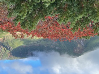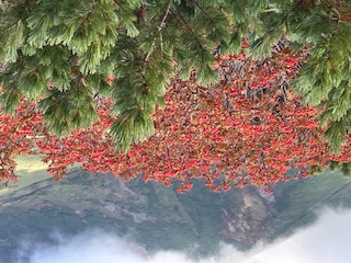 中岳温泉で足湯を楽しみ裾合平へ。紅葉はすでに終わっていたようでナナカマドは赤い実が残っていた。