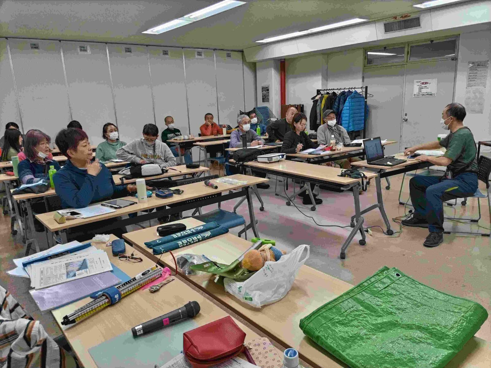 12/8(日)9:00〜17:00 札幌市西区民センターで冬山遭難対策講習会の座学を実施しました。会員19名(うち新入会員9名)が参加。「教わるよりも教える方が身につく」との観点から、参加者自身が講師となって以下の項目について説明し、活発な質疑応答が行われました。