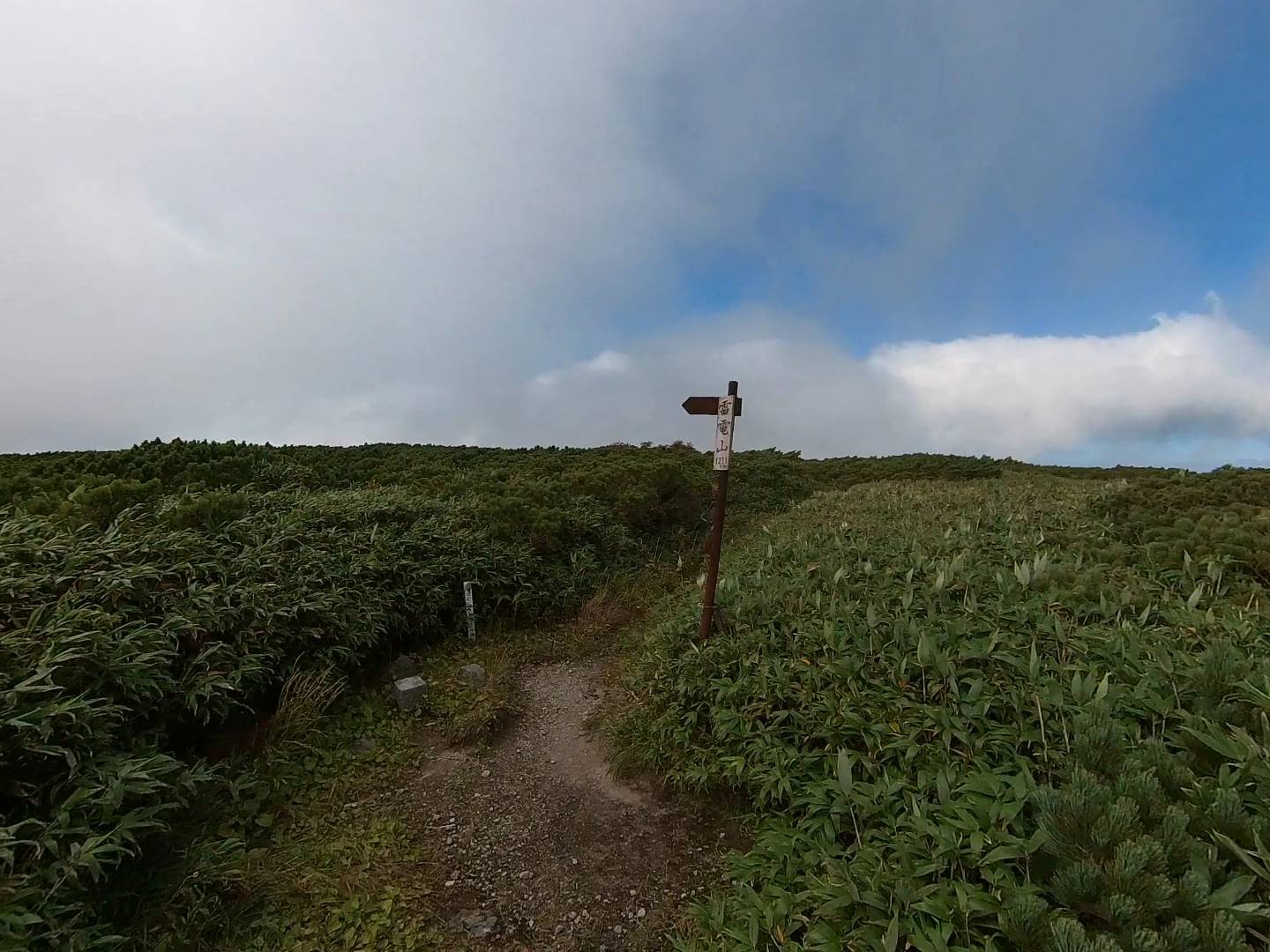 登山道は狭く笹が被さっている場所も多く、登山道が不明瞭な場所も