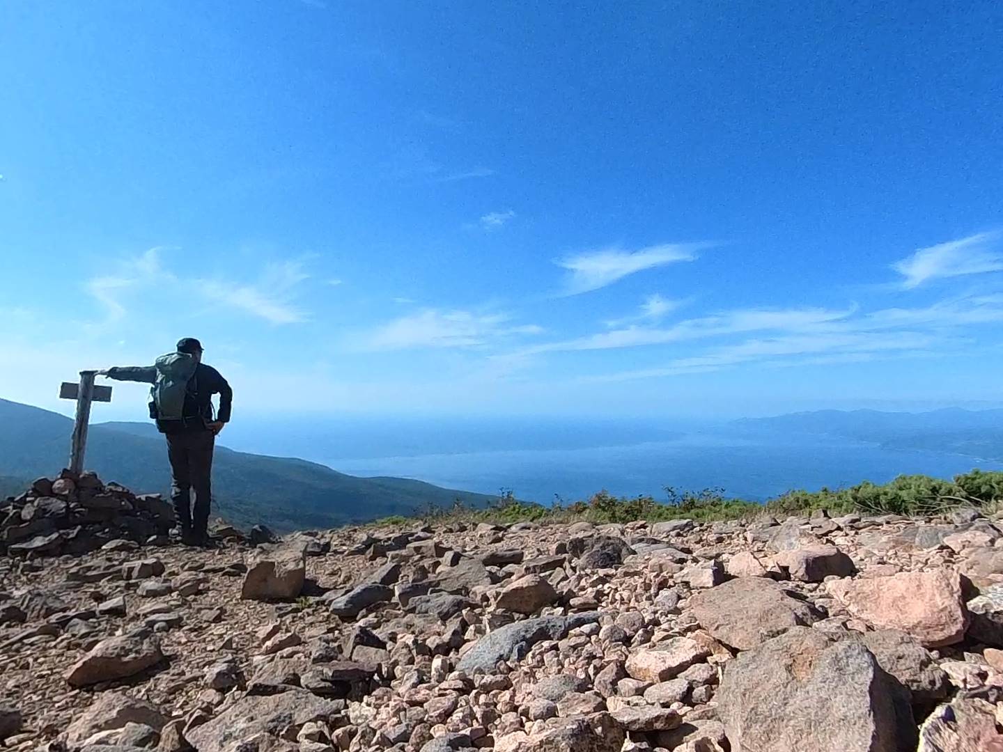 雷電山へ途中の広い稜線から見える目国内岳や海などは綺麗であったが