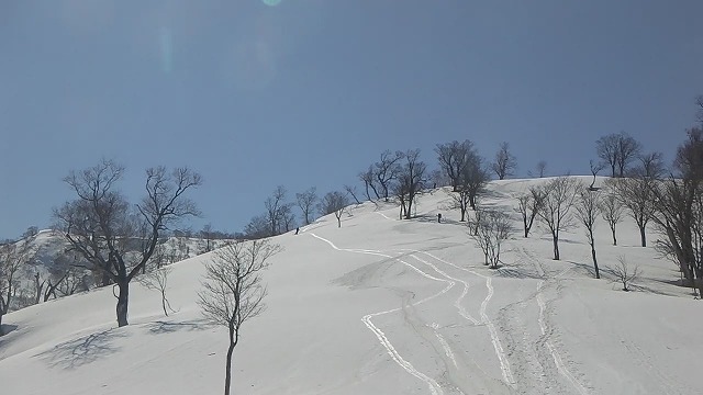 前日に降雪があったようで、白く輝く斜面をのんびりと景色を見ながら進む。