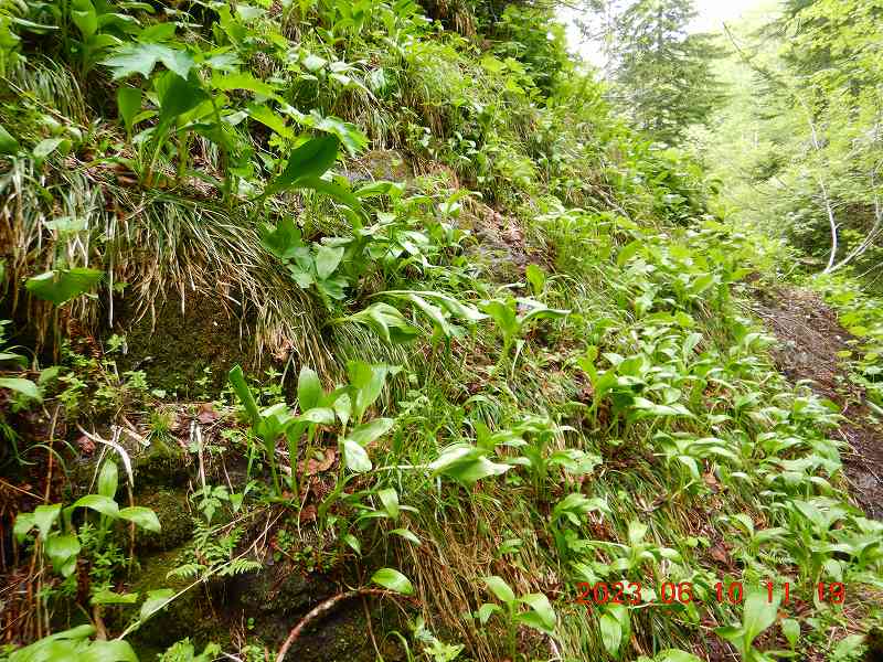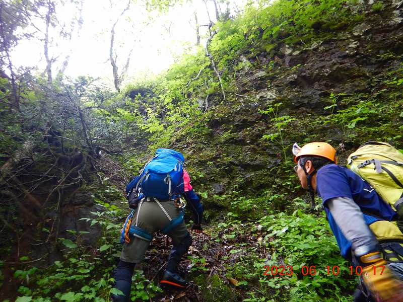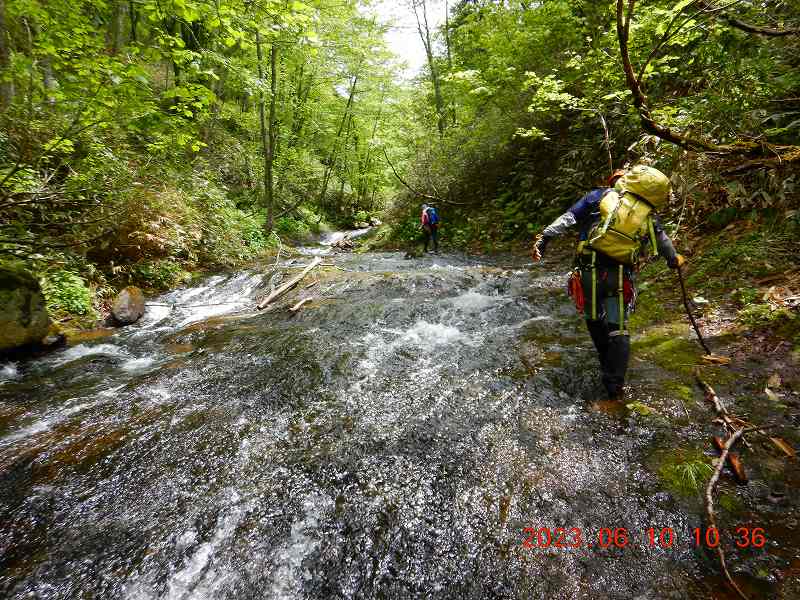 6月10日ガマ沢に行ってきた。今シーズン初めての沢、Fの沢入門も兼ねる山行だ。中山峠手前から林道を使い豊平峡大橋経由で入渓、枝沢からショートカットで縦走路~豊滝登山道で下山した。昨日からの雨で少し水量は多かったが、遡行には影響がない程度。沢は困難な箇所はなく、小さな滝が2か所。F1は手前に明瞭な巻道があり、F2は右側を簡単に直登できる。渓相はきれいでネギもあり、メンバー皆上機嫌。縦走路に出れば楽勝に下山だと考えていたが、縦走路が予想以上に荒れ、意外と登りもあり、沢以上の難易度?かも。自分はこのルートを何度が経験しているが、全く記憶がなかったことに啞然とする。