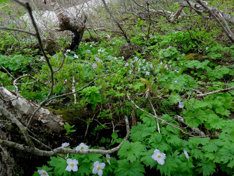 昨年までの2年間は林道が閉まっており9.7kmを歩かなくては夕張岳登山は出来なく3年振りの訪れになった。山開き前で花はちょっと少なめでした。ノビネチドリのアルビノを見つけたのでまずはパチリ。石原平は相変わらずシラネアオイのアルビノが多い所!蛇紋岩崩壊地では本当に数は少ないがユウパリコザクラが咲いていた。30年前に比べれば数十分の一の感じである。吹き通しではユウバリソウが迎えてくれたが心持、数が少なくなった感じである。