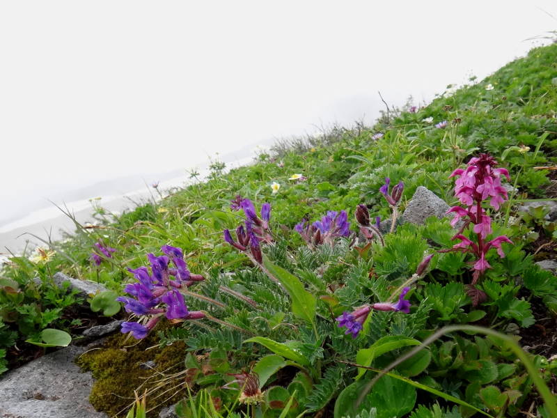 写真をもう少し!まずはチシマフウロとハクサンイチゲ!遠景の山は何処だろう?次いで暑寒の固有種マシケゲンゲとヨツバシオガマ!雨竜沼湿原は花は少ないながらワタスゲとハクサンチドリは多い。エゾカンゾウ、ウリュウコウホネ、エゾノヒツジグサはまだないが、ヒメシャクナゲがちらほら!湿原の入り口にスミレの群落!距は紫で地上茎があり、タチツボスミレかも知れないがアイヌタチツボスミレかも知れない!何せスミレは難しい!!
