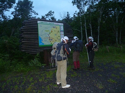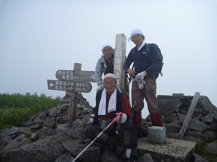 暑寒別岳は残雪期や夏道で、南暑寒別岳は夏道でそれぞれ歩いているが、その間の稜線はなんとも云えず魅力がありいつかは繋いでみたいと思っていた。今回 LにM松さん(箸別コースからMはMはOさん・M井・U-noの4人)、SLにK川さん(雨竜沼コース MはT所・M上・H生・鵜Nさんの5名)で計画があり参加した。コースは22km位あり特に暑寒別岳から南暑寒別岳への下りと登りは笹が被ったりの急な悪路で疲れもあり大変でした。しかし終わってみれば達成感でいっぱいです。私も写真を少し、Oさんと比べれば全く恥ずかしい写真ですが(似て非ですね)。?花畑から遠くに山が?4時に箸別小屋前をスタート?無線交信をするOさん?山頂で