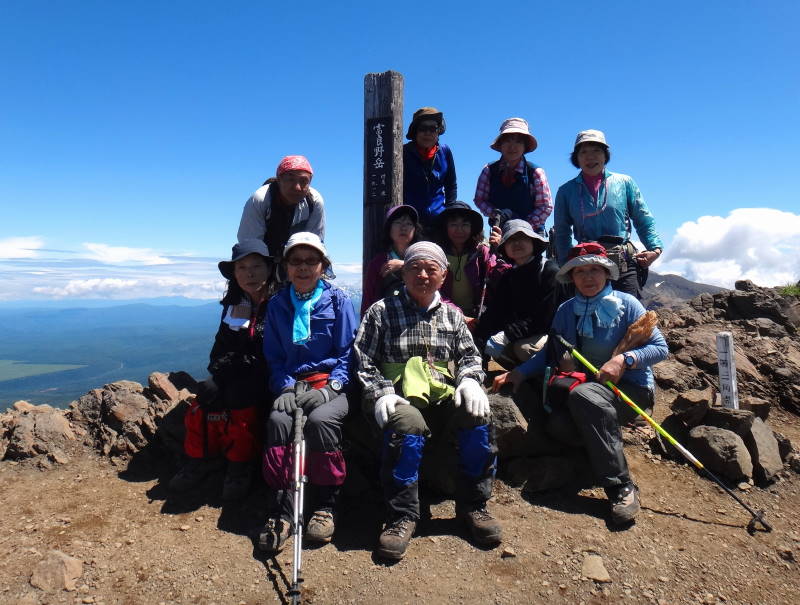 夏山入門と言っても入門者一人で十二分に経験ありで教える事もない。単なる夏山1泊で2年振りにカミホロ~富良野岳縦走と洒落込む!総勢13名!5日は朝から快晴で絶好の登山日和で誰のせいでしょう?朝3時、松○さんは慰霊登山に大砲岩へ!カミホロの朝は太陽が眩しい!今年の雪解けは遅く例年に比べて