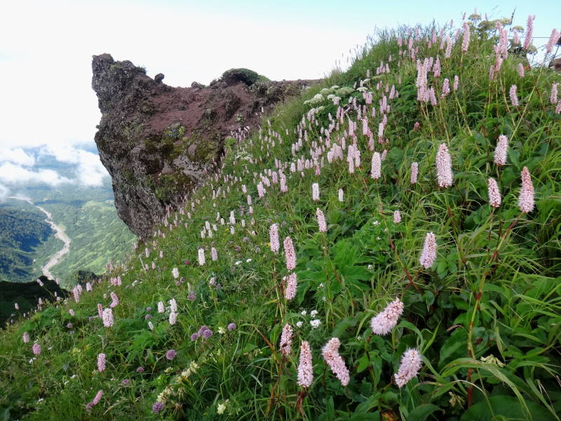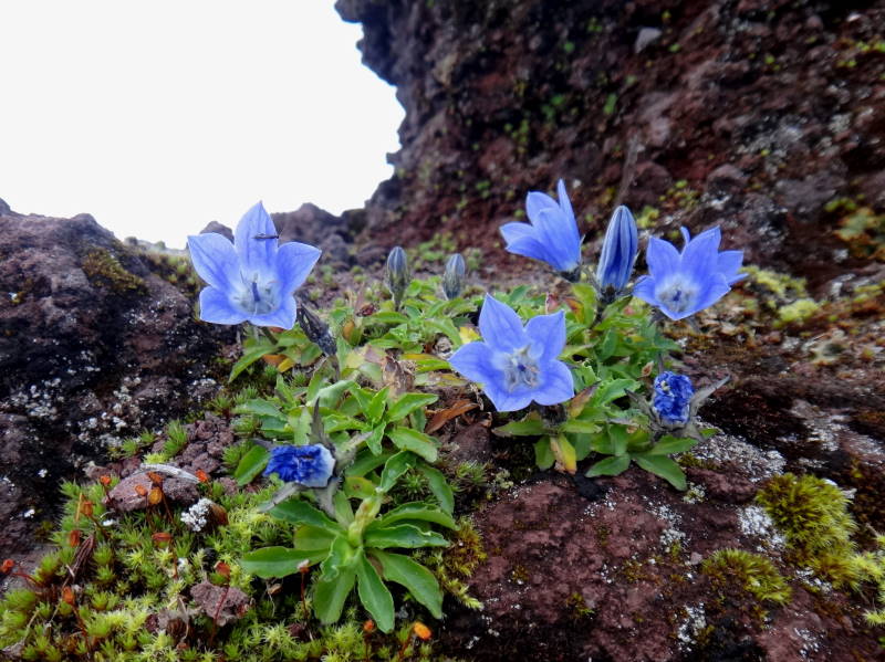 利尻山のお花は9合目からが見所だ!9合目の道標には「ここからが正念場」と書かれているが、ここまでも十分に「正念場」だったが、まずはタカネナデシコの大きな株を見つけて写真におさめた。イワギキョウもあちこちに咲いている。しかしこの山の圧巻は頂上付近のイブキトラノオの群落だろう!嘗ては長官山への大斜面はボタンキンバイの大群落で覆い尽くされていて黄色いじゅうたんのようだったが今は時期がずれていたのかそれとも笹がはびこってしまってかその面影もない。ボタンキンバイと共に有名なリシリヒナゲシも今回も見る事が出来なかった。リシリを冠した花は13種にも及ぶらしい(s39.7発行、深田久弥が日本百名山利尻岳にそう書いてある。因みに山名に関してはs62.9発行、深田クラブ著、日本二百名山では利尻山になっている。国土地理院の地図でも利尻山になっている。)が今回はリシリオウギ、リシリブシ、リシリリンドウ、リシリトウウチソウなどが見つけられた。昔、今は行けなくなった南峰の頂上でリシリソウを見つけた事が懐かしい。