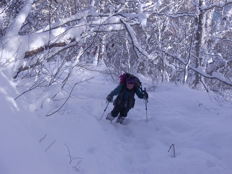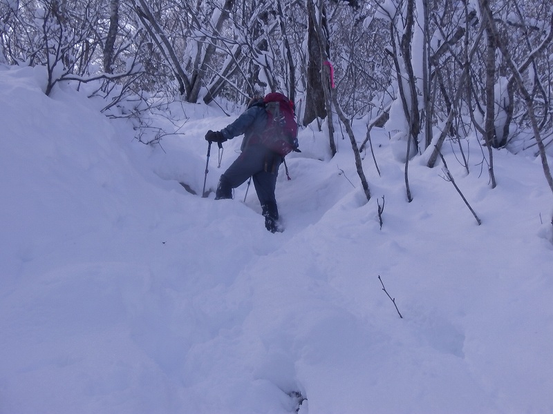快晴無風の絶好の山行日和であったが、24日~25日大雪(札幌、11月では60数年ぶりの大雪)が降ったせいか駐車場には我々の車1台(7:35)であった。その後も我々のほかは1パーティー(2名)のみであった。できれば西峰までと考えていたが、途中から昨日と思われるトレースもなくなり(途中で引き返したと思われる。)フルラッセルとなり第一見晴台(12時30分:登り4時間30分)にて行動停止とした。11月1日(日)『恵庭岳』山行のときは第一見晴台まで2時間15分、第二見晴台まで3時間ほどで登っているが、今日はフルラッセルで時間がかかってしまった。
