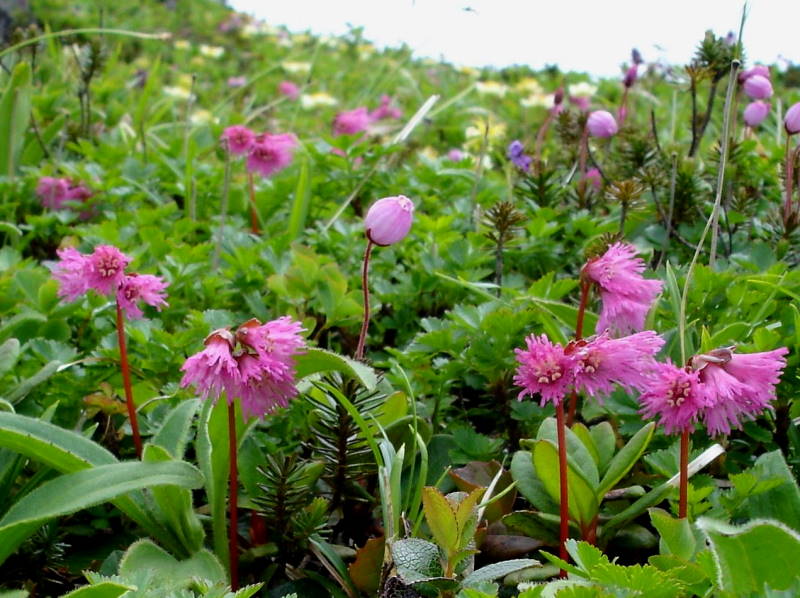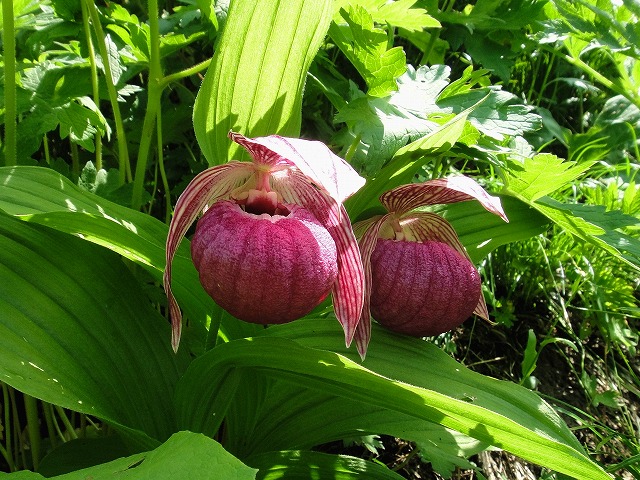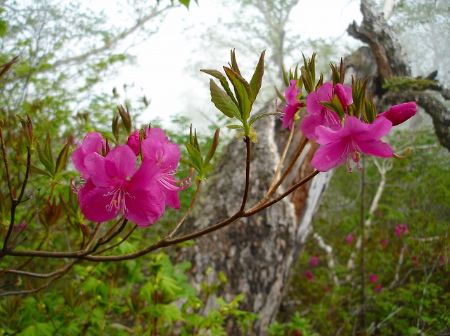 大雪山の春を彩る花に本当に小さなミネズオウがあります。ピンクの花の絨毯のようです。あまりに多すぎてあまり名前を覚えない人が多いですが、なかなか含蓄のある花と感じております。本州の秋田駒ヶ岳でも見ましたが色は真っ白でした。次はホテイアツモリソウですが、昔はキリギシ山で随分と見たものですが、今は募集登山でしか見ることが出来ませんね!3番目はムラサキヤシオツツジですが、伏美岳で写しました。1合目から9合目までびっしりと咲いていて圧巻です。右を見ても左を見ても濃い紫色で一見の価値があります。最後は礼文島のサクラソウモドキですが、定天では毎年見ております。昔キリギシ山でも多く見ましたが「もどき」なんてかわいそうな名前がついておりますがれっきとしたサクラソウ科のなかなか味のある花ですね!