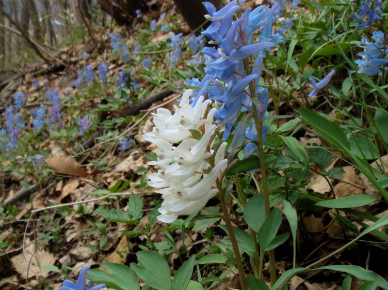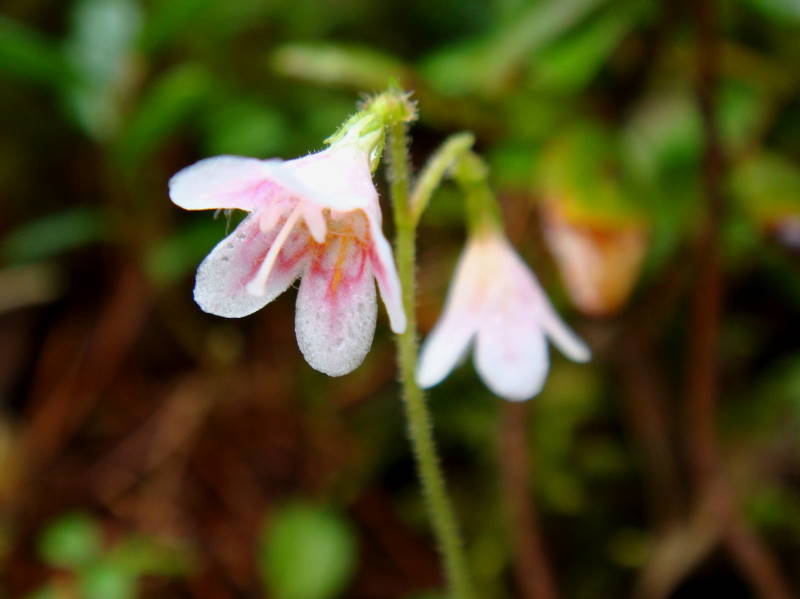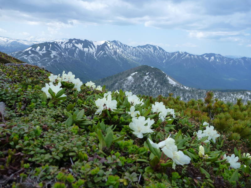 リンネソウの写真がありましたので追加致します。これはカムイミンタラ近くのハイマツの下に群生してあったのを一輪だけ写しましたが、あまり小さいのでちょっとピントが甘いようですね!枝の途中で二つに分かれており「メオトバナ」の感じが出ておりますね!次はニペソツの途中で撮ったキバナシャクナゲですが、あまりにどこにでもある花ですが、意外に写真は写しておりませんでした。次はミヤマオダマキのアルビノ種で岩内岳の頂上で1輪だけ咲いておりました。その後もまだ見た事はありません。エゾエンゴサクは毎年八剣山で見ますが、いつもアルビノ種も見つけられますね!
